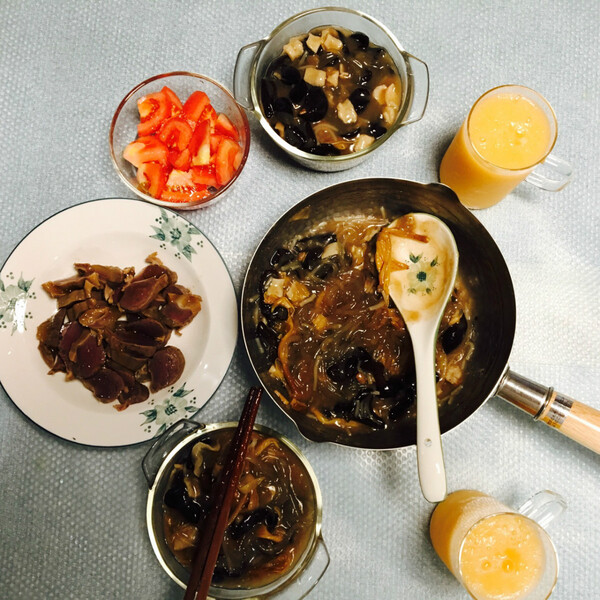 胡辣汤因为汤汁粘稠需要加淀粉,我自己做的时候木耳放多了:(,所以整个汤很稠,刚拿下火的时候我一直担心会糊锅底,等到洗锅时发现根本没事!给赞!