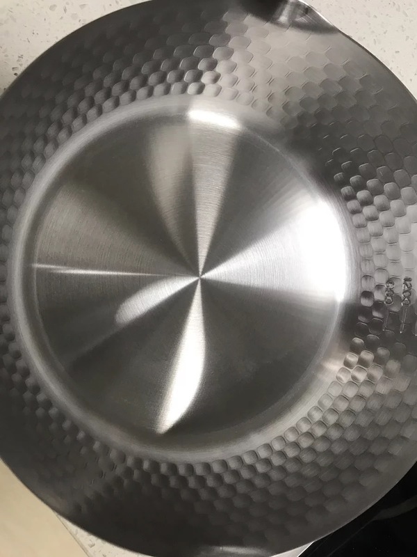 细看雪平锅的纹路还是很漂亮的,加上一体成型的锅身,颜值在线。准备试用前建议使用湿巾纸或毛巾把锅子里外仔细擦一下。