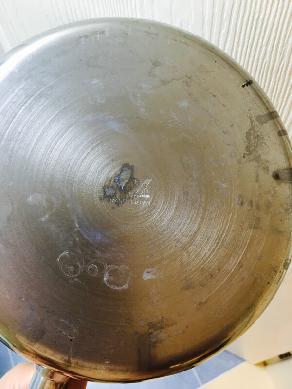 开箱后第一眼就会注意到雪平锅日本制几个字,22cm的尺寸还是很大的。锅子的底下就是一些产品信息和使用注意,有一点需要提醒一下,雪平锅是燃气、电磁炉两用的。
